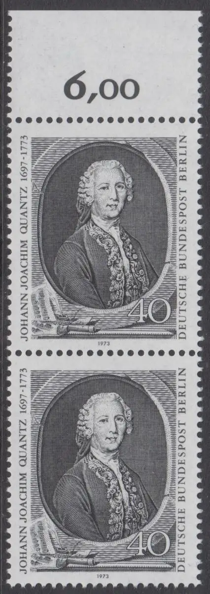 BERLIN 1973 Michel-Nummer 454 postfrisch vert.PAAR RAND oben (b) - Johann Joachim Quantz, Flötist und Komponist
