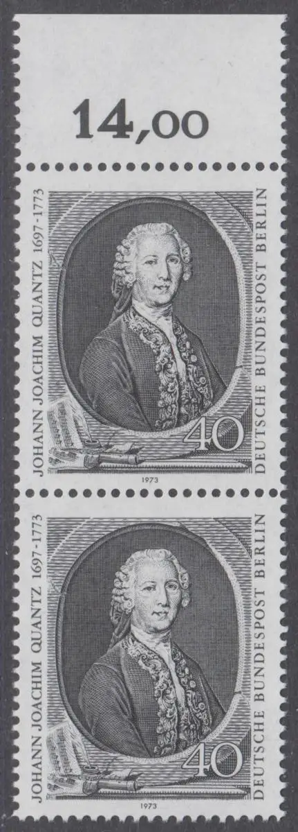 BERLIN 1973 Michel-Nummer 454 postfrisch vert.PAAR RAND oben (f) - Johann Joachim Quantz, Flötist und Komponist