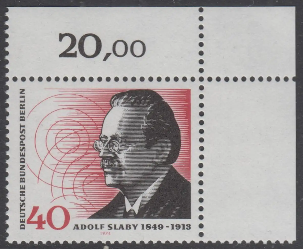 BERLIN 1974 Michel-Nummer 467 postfrisch EINZELMARKE ECKRAND oben rechts - Adolf Slaby, Funktechniker