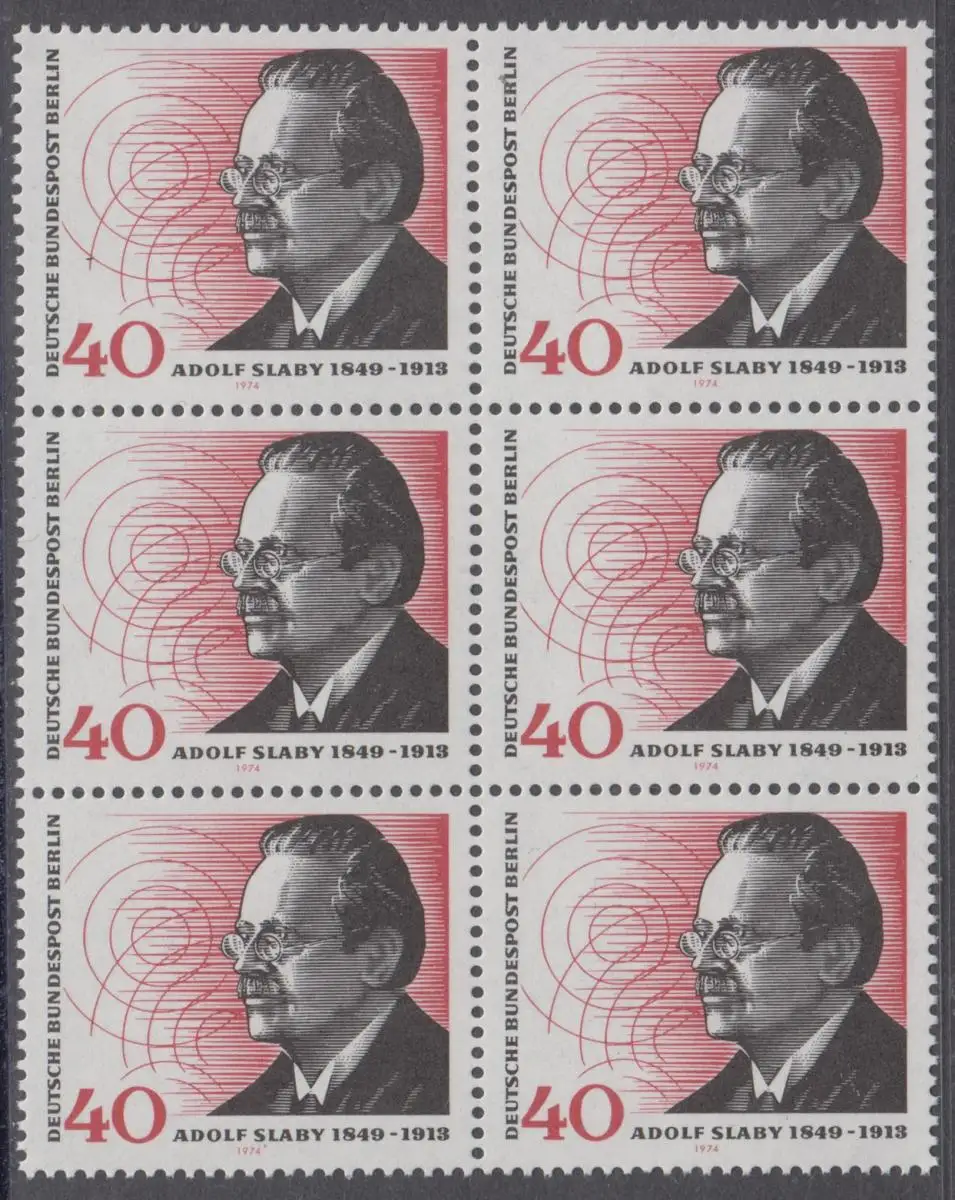 BERLIN 1974 Michel-Nummer 467 postfrisch vert.BLOCK(6) - Adolf Slaby, Funktechniker