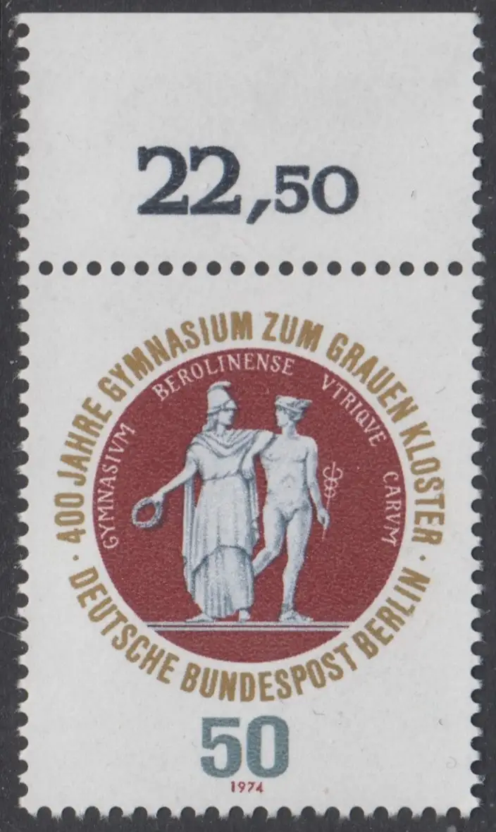 BERLIN 1974 Michel-Nummer 472 postfrisch EINZELMARKE RAND oben (k) - Gymnasium zum Grauen Kloster, Berlin