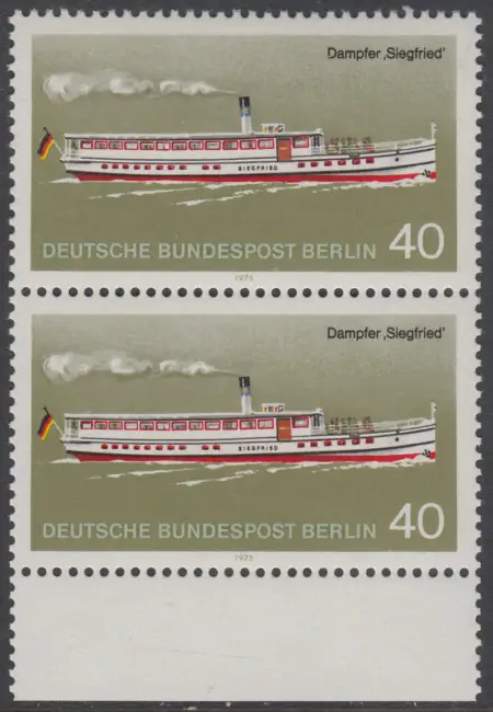 BERLIN 1975 Michel-Nummer 484 postfrisch vert.PAAR RAND unten - Berliner Verkehrsmittel, Personenschiffahrt: Dampfer Siegfried