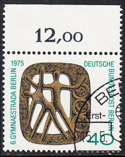 BERLIN 1975 Michel-Nummer 493 gestempelt EINZELMARKE RAND oben (b)