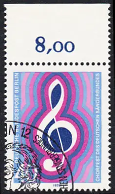 BERLIN 1976 Michel-Nummer 522 gestempelt EINZELMARKE RAND oben (c)