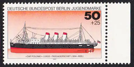 BERLIN 1977 Michel-Nummer 546 postfrisch EINZELMARKE RAND rechts - Deutsche Schiffe: Luxus-Paasagierschiff Cap Polonio