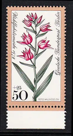 BERLIN 1978 Michel-Nummer 575 postfrisch EINZELMARKE RAND unten - Waldblumen: Rotes Waldvögelein