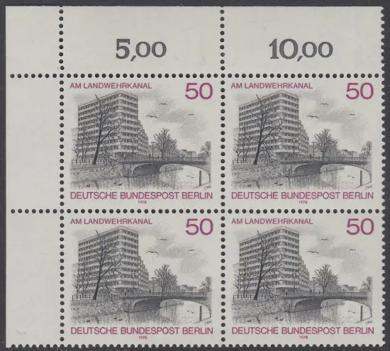 BERLIN 1978 Michel-Nummer 579 postfrisch BLOCK ECKRAND oben links - Berlin-Ansichten: Shellhaus am Landwehrkanal