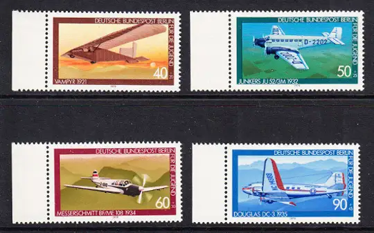 BERLIN 1979 Michel-Nummer 592-595 postfrisch SATZ(4) EINZELMARKEN RÄNDER links - Luftfahrt