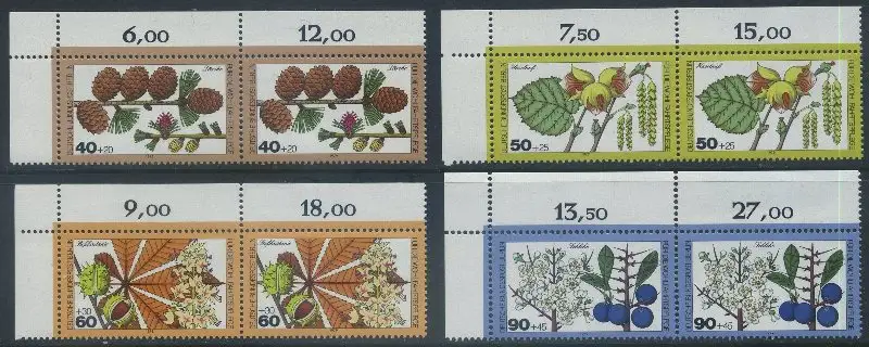 BERLIN 1979 Michel-Nummer 607-610 postfrisch SATZ(4) horiz.PAARE ECKRÄNDER oben links - Blätter, Blüten und Früchte des Waldes