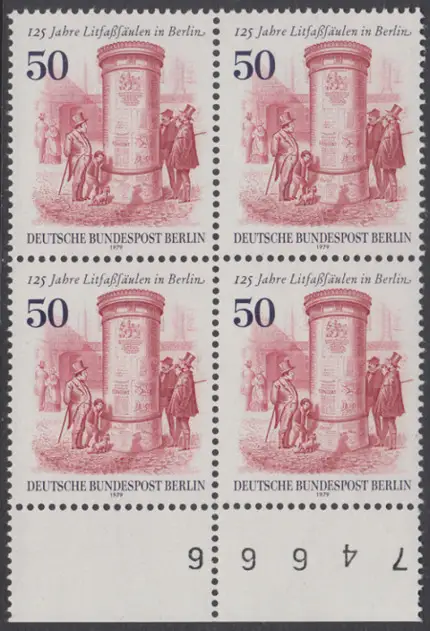 BERLIN 1979 Michel-Nummer 612 postfrisch BLOCK RÄNDER unten - Litfaßsäulen