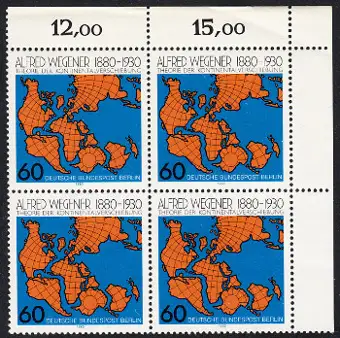 BERLIN 1980 Michel-Nummer 616 postfrisch BLOCK ECKRAND oben rechts - Alfred Wegener, Geophysiker und Meteorologe