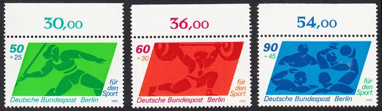 BERLIN 1980 Michel-Nummer 621-623 postfrisch SATZ(3) EINZELMARKEN RÄNDER oben (b) - Sporthilfe
