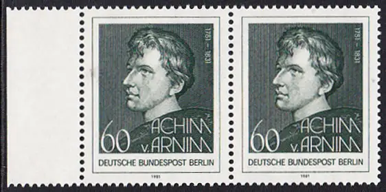 BERLIN 1981 Michel-Nummer 637 postfrisch horiz.PAAR RAND links - Achim von Arnim, Dichter