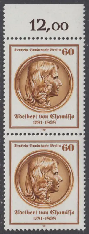 BERLIN 1981 Michel-Nummer 638 postfrisch vert.PAAR RAND oben - Adelbert von Chamisso. Dichter und Naturforscher