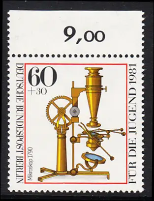 BERLIN 1981 Michel-Nummer 643 postfrisch EINZELMARKE RAND oben (a) - Optische Instrumente: Äquatoreal