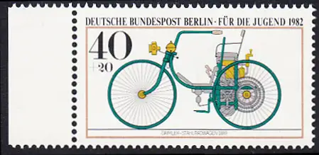 BERLIN 1982 Michel-Nummer 660 postfrisch EINZELMARKE RAND links - Historische Kraftfahrzeuge: Daimler-Stahlradwagen