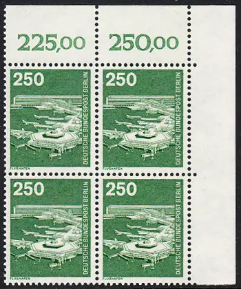 BERLIN 1982 Michel-Nummer 671 postfrisch BLOCK ECKRAND oben rechts - Industrie & Technik: Flughafen Frankfurt