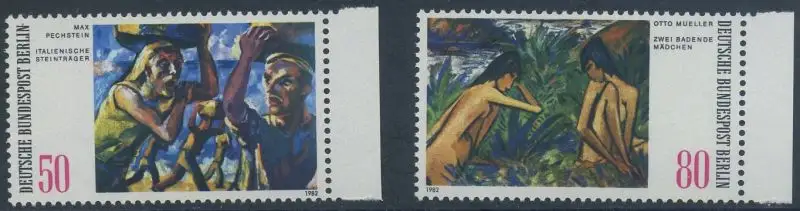 BERLIN 1982 Michel-Nummer 678-679 postfrisch SATZ(2) EINZELMARKEN RÄNDER rechts - Moderne Gemälde aus Berliner Sammlungen