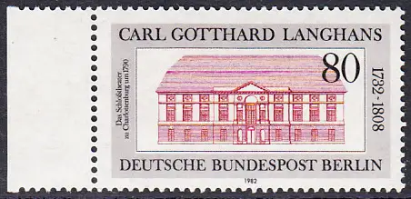 BERLIN 1982 Michel-Nummer 684 postfrisch EINZELMARKE RAND links - Carl Gotthard Langhans, Baumeister