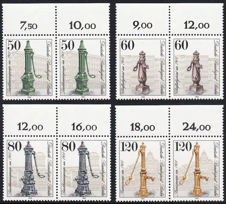 BERLIN 1983 Michel-Nummer 689-692 postfrisch SATZ(4) horiz.PAARE RÄNDER oben - Historische Straßenpumpen in Berlin