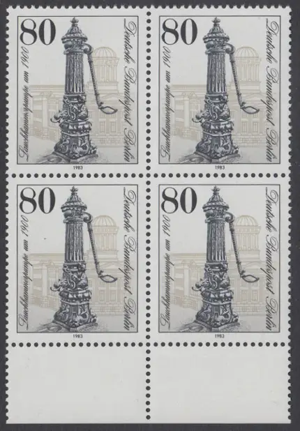 BERLIN 1983 Michel-Nummer 691 postfrisch BLOCK RÄNDER unten - Historische Straßenpumpen in Berlin: Lauchhammerpumpe, Schlossstraße