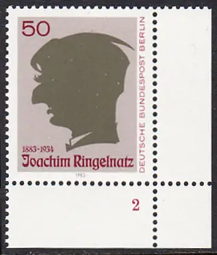 BERLIN 1983 Michel-Nummer 701 postfrisch EINZELMARKE ECKRAND unten rechts (b) - Joachim Ringelnatz, Maler und Schriftsteller (Scherenschnitt)