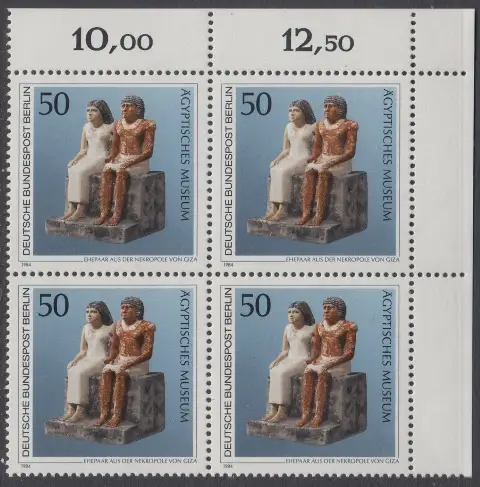 BERLIN 1984 Michel-Nummer 709 postfrisch BLOCK ECKRAND oben rechts - Kunstschätze in Berliner Museen: Ehepaar aus der Nekropole von Giza (Ägyptisches Museum)