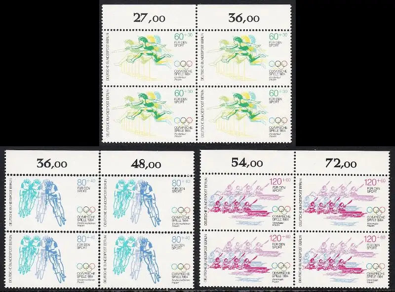 BERLIN 1984 Michel-Nummer 716-718 postfrisch SATZ(3) BLÖCKE RÄNDER oben - Olympische Sommerspiele, Los Angeles