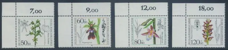 BERLIN 1984 Michel-Nummer 724-727 postfrisch SATZ(4) EINZELMARKEN ECKRÄNDER oben links - Orchideen