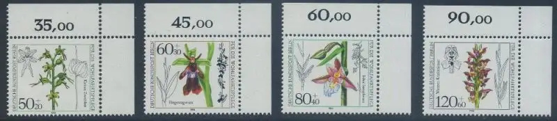 BERLIN 1984 Michel-Nummer 724-727 postfrisch SATZ(4) EINZELMARKEN ECKRÄNDER oben rechts - Orchideen