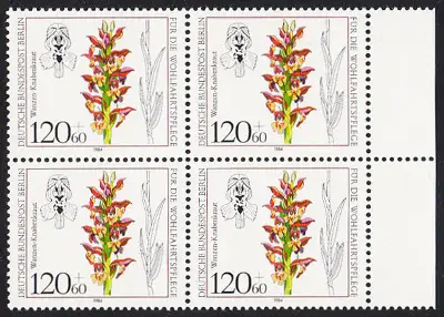 BERLIN 1984 Michel-Nummer 727 postfrisch BLOCK RÄNDER rechts - Orchideen: Wanzen-Knabenkraut