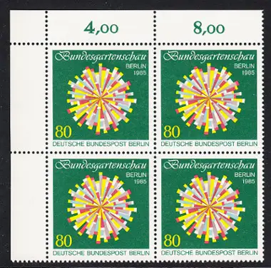 BERLIN 1985 Michel-Nummer 734 postfrisch BLOCK ECKRAND oben links - Bundesgartenschau, Berlin