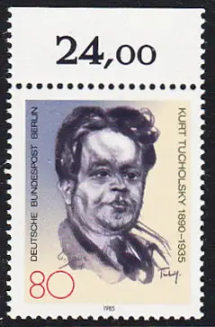 BERLIN 1985 Michel-Nummer 748 postfrisch EINZELMARKE RAND oben (b) - Kurt Tucholsky, Schriftsteller