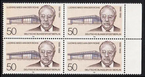 BERLIN 1986 Michel-Nummer 753 postfrisch BLOCK RÄNDER rechts - Ludwig Mies van der Rohe, Architekt