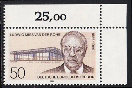 BERLIN 1986 Michel-Nummer 753 postfrisch EINZELMARKE ECKRAND oben rechts - Ludwig Mies van der Rohe, Architekt
