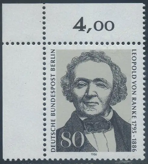 BERLIN 1986 Michel-Nummer 759 postfrisch EINZELMARKE ECKRAND oben links - Leopold von Ranke, Historiker