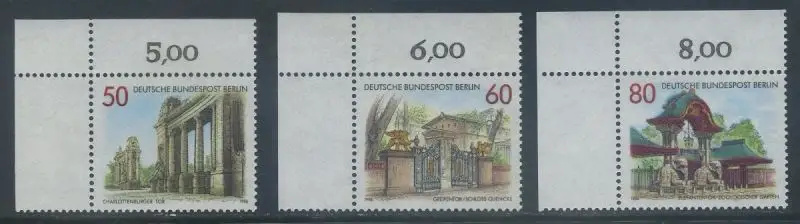 BERLIN 1986 Michel-Nummer 761-763 postfrisch SATZ(3) EINZELMARKEN ECKRÄNDER oben links - Portale und Tore in Berlin