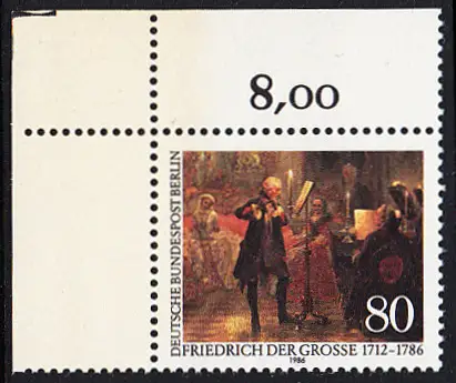 BERLIN 1986 Michel-Nummer 764 postfrisch EINZELMARKE ECKRAND oben links - König Friedrich der Große von Preußen
