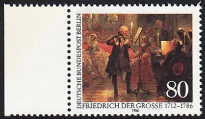BERLIN 1986 Michel-Nummer 764 postfrisch EINZELMARKE RAND links - König Friedrich der Große von Preußen