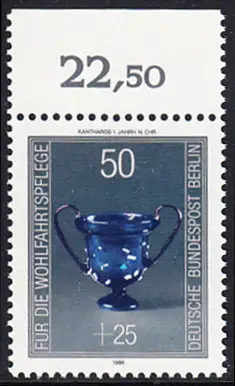 BERLIN 1986 Michel-Nummer 765 postfrisch EINZELMARKE RAND oben (b) - Kostbare Gläser: Kantharos