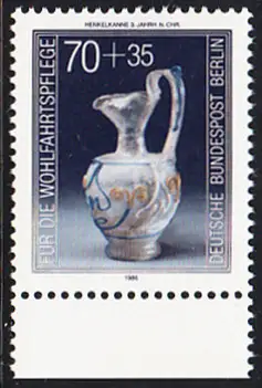 BERLIN 1986 Michel-Nummer 767 postfrisch EINZELMARKE RAND unten - Kostbare Gläser: Kännchen mit Fadenauflage