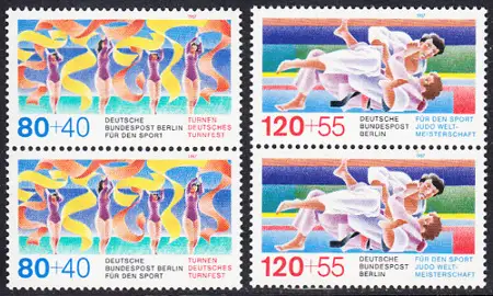 BERLIN 1987 Michel-Nummer 777-778 postfrisch SATZ(2) vert.PAARE - Sporthilfe: Deutsches Turnfest, Berlin / Judo-Weltmeisterschaften, Essen