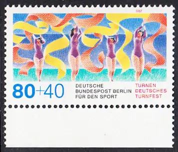 BERLIN 1987 Michel-Nummer 777 postfrisch EINZELMARKE RAND unten - Sporthilfe: Deutsches Turnfest, Berlin