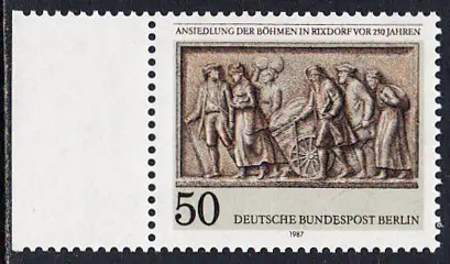 BERLIN 1987 Michel-Nummer 784 postfrisch EINZELMARKE RAND links - Ansiedlung der Böhmen in Rixdorf vor 250 Jahren