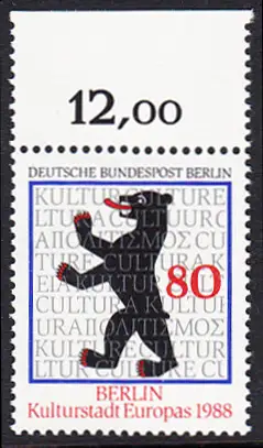 BERLIN 1988 Michel-Nummer 800 postfrisch EINZELMARKE RAND oben (a) - Berlin, Kulturhauptstadt Europas 1988