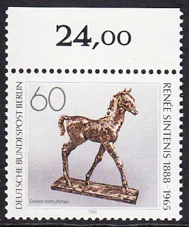 BERLIN 1988 Michel-Nummer 805 postfrisch EINZELMARKE RAND oben (b) - Renée Sintenis, Bildhauerin (Großes Vollblutfohlen)