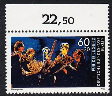 BERLIN 1988 Michel-Nummer 808 postfrisch EINZELMARKE RAND oben - Wettbewerb Jugend musiziert: Bläserquintett