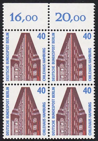 BERLIN 1988 Michel-Nummer 816 postfrisch BLOCK RÄNDER oben (a) - Sehenswürdigkeiten: St.-Petri-Dom, Schleswig