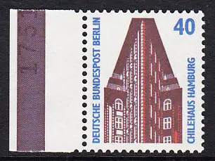 BERLIN 1988 Michel-Nummer 816 postfrisch EINZELMARKE RAND links - Sehenswürdigkeiten: St.-Petri-Dom, Schleswig