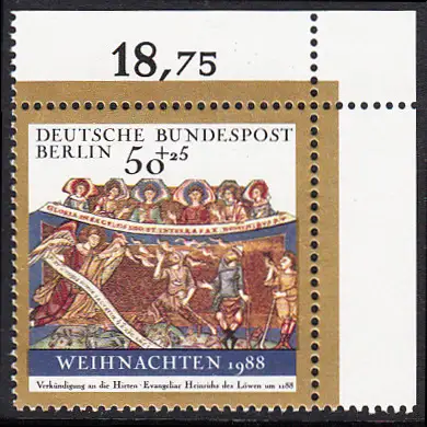 BERLIN 1988 Michel-Nummer 829 postfrisch EINZELMARKE ECKRAND oben rechts - Weihnachten